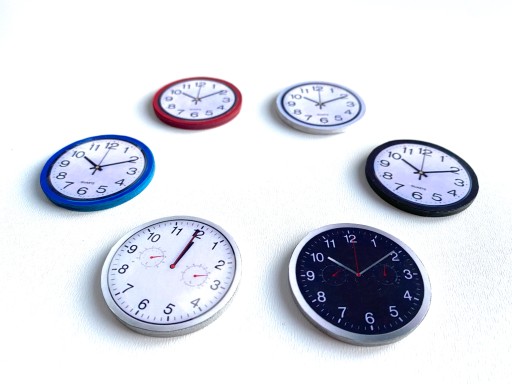 - zegar można zamocować na ścianie przy pomocy dwustronnego samoprzylepnego kółeczka dodanego do każdego zegara