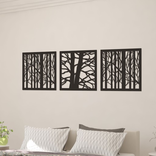 Dekoracyjny Tryptyk Drewniany Ażurowy LAS to nowatorska dekoracja ścienna.