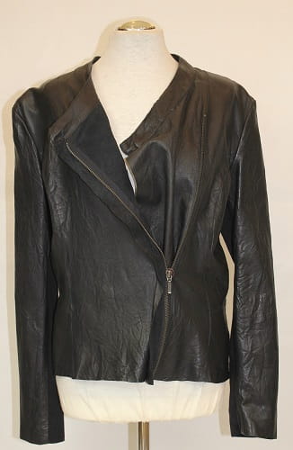 Kurtka skórzana , bez podszewki, wykończona surowym cięciem.