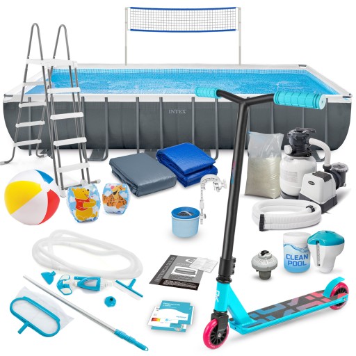 Basen ogrodowy stelażowy 732 x 366 x 132 cm z generatorem chloru ★★★★★ Zestaw 21w1