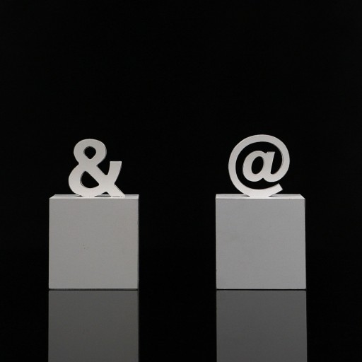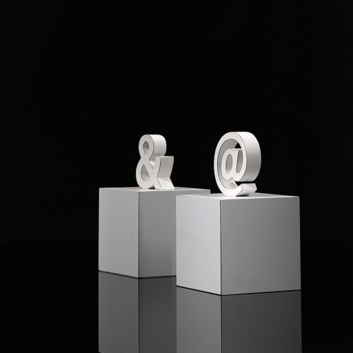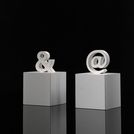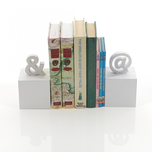 Podpórki wykonane są wykonane z wysokiej jakości płyty MDF pomalowanej na kolor biały. W górnej części podpórek znajdują się znaki & i @.