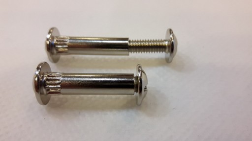 Nit ten składa się z dwóch części: grubszej o średnicy 5mm i cieńszej śrubki, którą wkręcamy w nit.