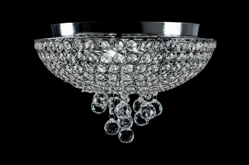 Plafon został wykonany z wysokiej jakości metalu odpornego na zarysowania czy uszkodzenia mechaniczne. Całego charakteru i eleganckiej nuty dodają kryształy rozmieszczone na niemal całej powierzchni lampy.