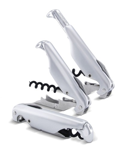 Korkociąg dwustopniowy otwieracz do wina X-Tens Chrome. Pozwala bez wysiłku, w dwóch krokach, otworzyć butelkę bez złamania korka. Ergonomiczny design i składana rączka pozwalają zmmniejszyć rozmiar korkociągu do minimum. Materiały wyłącznie pochodzenia hiszpańskiego: rączka malowana z żelaza galwanizowanego, dźwignia ze stali niklowanej, spirala pokryta teflonem, nożyk ząbkowany ze stali nierdzewnej. Niezwykle trwały i oryginalny korkociąg to doskonała inwestycja na długie lata.