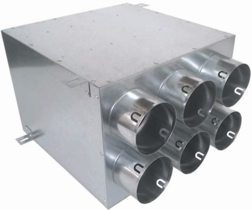 Wykonany ze stali ocynkowanej element systemu rekuperacji, który umożliwia rozdzielenie przepływającego powietrza na wiele wyjść. Niewykorzystane króćce należy zamknąć zaślepką.
