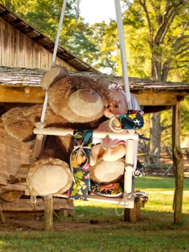 Zestaw można odwiązać, wyprać lub np. schować na noc przed deszczem pozostawiając samą huśtawkę.