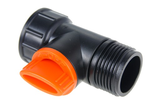 ➡️ Łącznik z zaworem, na którym zamontowana jest wkrętka ( przyłącze) z szybkozłączką umożliwia podłączenie węża ogrodowego o średnicy 1/2" z pojemnikiem na wodę deszczową, a także przyłączenie węża do kranu o średnicy 3/4".