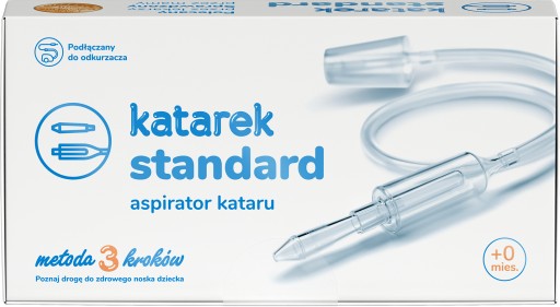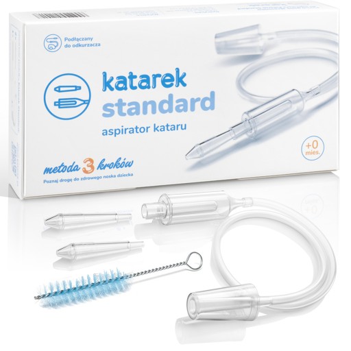 Aspirator Katarek Standard podłączany jest do domowego odkurzacza o mocy 800–1800W. Zredukowana, jednostajna siła ssąca sprawia, że jest on znacznie skuteczniejszy w porównaniu z ustnymi aspiratorami oraz tradycyjnymi gruszkami. Dzięki aspiratorowi Katarek Standard skutecznie i szybko pozbędziesz się wydzieliny z noska malca, przynosząc mu natychmiastową ulgę. Cały proces odciągania wydzieliny jest całkowicie bezpieczny dla każdego dziecka, już od pierwszego dnia życia. Produkt posiada dwie końcówki pozwalające na stosowanie go u dwójki dzieci jednocześnie.