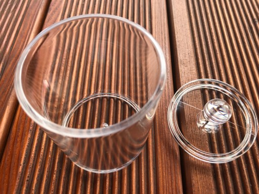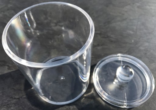 Pojemnik przeźroczysty wykonany z tworzywa sztucznego.