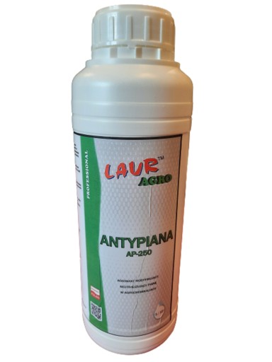 Profesjonalny neutralizator piany AGRO LAUR AP-250 antypiana. Skoncentrowany adiuwant modyfikujący, neutralizator piany w roztworach cieczy roboczej agrochemikaliów. Dedykowany do przeciwdziałania i skutecznego niwelowania powstającej piany w opryskiwaczach i zbiornikach roboczych.