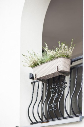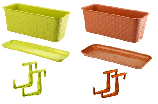 Doniczka balkonowa RATTAN wykonana z dobrej jakości plastiku w formie wiernie imitującej naturalny ratan.
