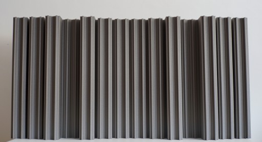 Panel wykonany z szarego styroduru, który jest materiałem znacznie trwalszym od utwardzonego styropianu EPS200, a także znacznie lżejszym od drewna.