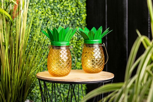Lampka solarna w kształcie ANANASA w kolorze żółto-zielonym, sprawdzi się jako dekoracyjne i praktyczne oświetlenie Twojego ogrodu.