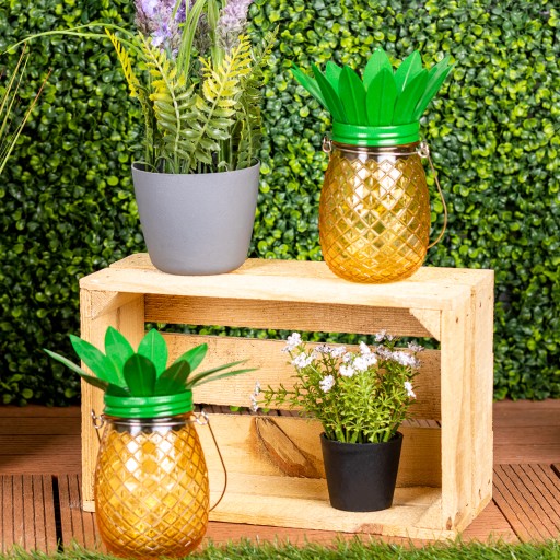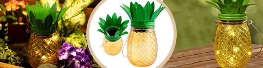 Lampa Ogrodowa LED LATARENKA Solarna Lampion Wiszący SŁOIK ANANAS szklany 3000K