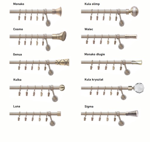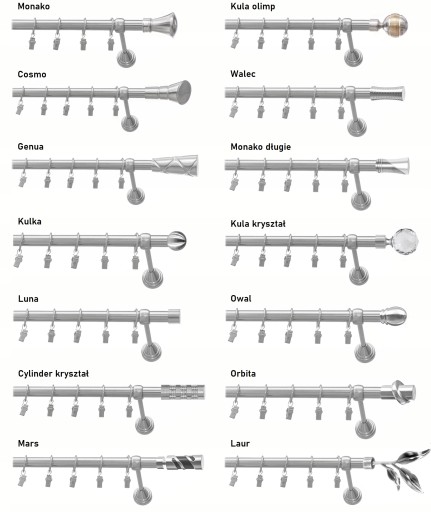 DOSTĘPNE KOLORY I ZAKOŃCZENIA KARNISZY: