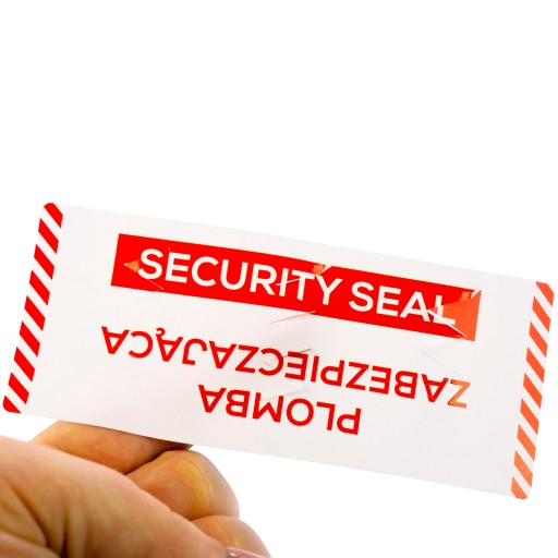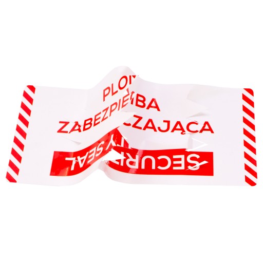 Etykiety na papierze samoprzylepnym z nadrukiem cyfrowym: plomby zabezpieczające- security seal 120x50mm 100szt z perforacja.