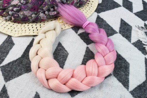 Włosy syntetyczne w przepięknym wariancie kolorystycznym - blond-różowo-fioletowy. Wykonane z gładkiego i przyjemnego w dotyku henlonu.
