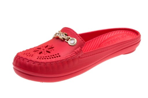 KLAPKI DAMSKIE CZERWONE Z OZDOBĄ