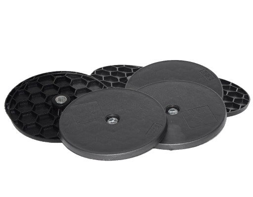 - Gładkie talerze, bez perforacji – uniemożliwiają obrabianie się wkrętów w tworzywie.