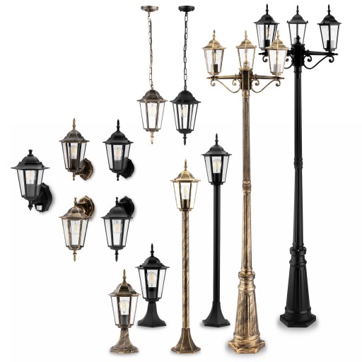 Lampy serii BELLIS dostępne są w dwóch wariantach kolorystycznych — czarnym oraz patyny (stare złoto). W skład rodziny wchodzą lampy ścienne, lampy wiszące oraz słupki ogrodowe o różnych wysokościach.
