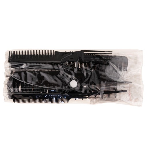 Zestaw zawiera wszystkie niezbędne typy grzebieni potrzebne do większości zabiegów fryzjerskich.