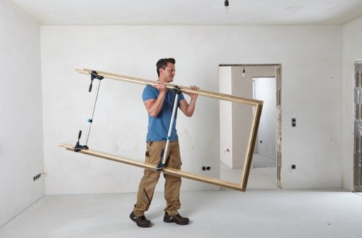 - Zapewnia to bezpieczne zamocowanie i dobre trzymanie podczas wyrównywania ościeżnicy. Ponadto poprzez stabilne zamocowanie przy bocznych elementach rozpierak do montażu podpiera i chroni ościeżnicę podczas transportu i osadzania