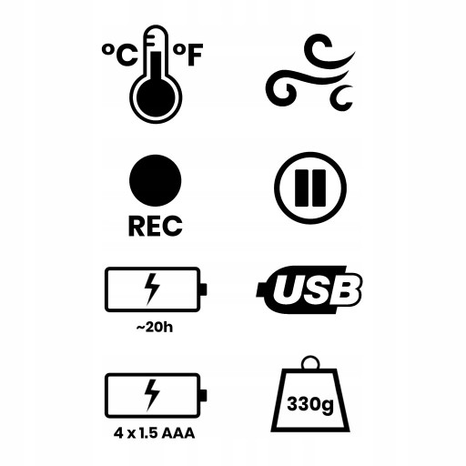 Żywotność anemometru zapewniają 4 baterie 1.5V AAA