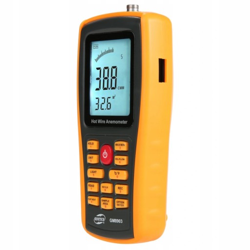 Wiatromierz marki Benetech to precyzyjne urządzenie do pomiaru prędkości wiatru, temperatury i przepływu powietrza z możliwością podłączenia do komputera przy pomocy złącza USB.