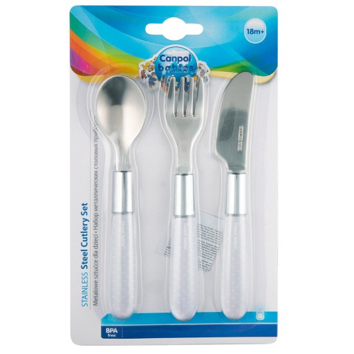 CANPOL SZTUĆCE DLA DZIECI STAL NIERDZEWNA ŁYŻKA + WIDELEC + NÓŻ