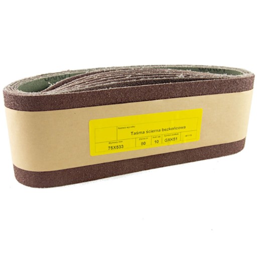 Pas ścierny bezkońcowy o wymiarach 75x533 mm wykonany z płótna ściernego GXK51 z nasypem elektrokorundowym. Polecany przede wszystkim do szlifowania drewna, metalu i tworzyw sztucznych.