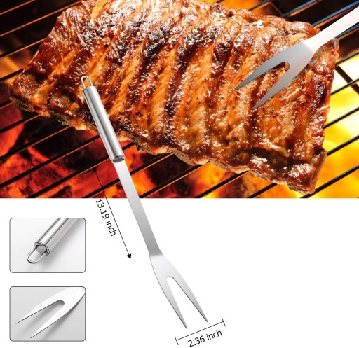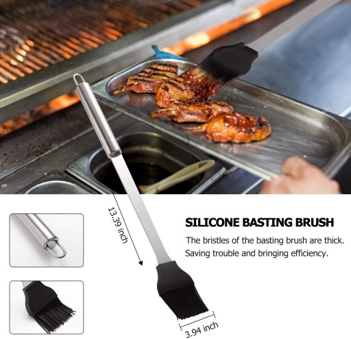 Zestaw akcesoriów do grillowania, wykonany z wytrzymałej stali nierdzewnej, nie rdzewieje i długotrwały. Wyposażony w antypoślizgowe uchwyty ze stali nierdzewnej, aby zapewnić najbardziej komfortowe grillowanie.