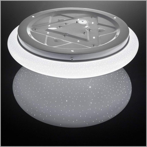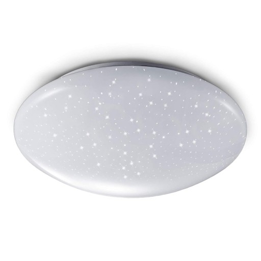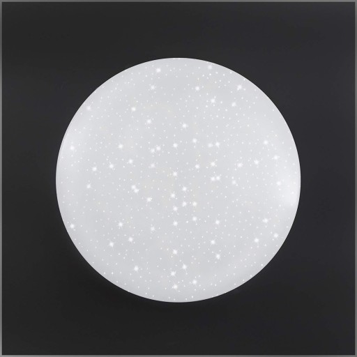 Lampa sufitowa - plafon z kloszem który daje efekt gwieździstego nieba w kolorze białym co daje bardzo ładny efekt. Dzięki nowoczesnej i prostej konstrukcji okrągła lampa LED pasuje do każdego pomieszczenia.