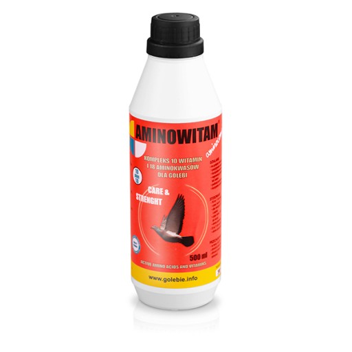 Jest produktem odżywczym, zawierającym zestaw ważnych esencjonalnych aminokwasów oraz bogactwo witamin. Szczególnie bogaty skład, daje mu szerokie spektrum oddziaływania na organizm gołębi. AMINOWITAM uaktywnia rozwój młodych gołębi. Doskonale regeneruje ptaki po wyczerpującym locie.