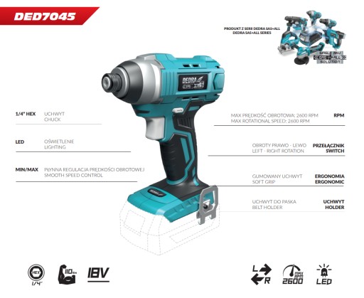 Zakrętarka Udarowa Aku DEDRA DED7045 SAS+ 18V BODY