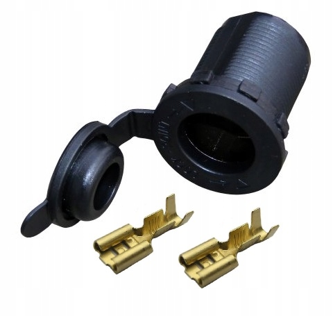 Gniazdo zapalniczki samochodowej montażowe hermetyczne z gumową osłoną.