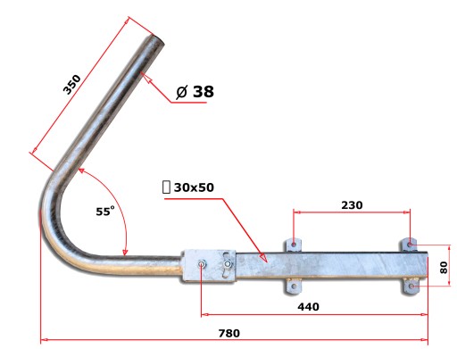 - długość odcinka pionowego dla anteny - 350mm