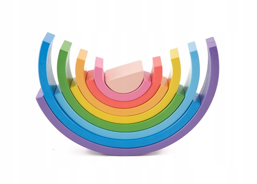 Zabawka edukacyjna składająca się z 9 elementów do dopasowania. Zestaw kolorowych klocków o różnych rozmiarach komponuje się w tęczę. Typ zabawki spopularyzowany przez niemiecką firmę Grimm's, teraz dostępna również u innych producentów. Zabawka pomalowana jest nietoksycznymi farbami.