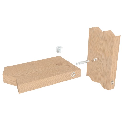 Montaż dokonuje się poprzez wywiercenie otworu Ø 15 mm, w płycie którą chcemy połączyć oraz otworu na trzpień o średnicy 7,5 mm, następnie dokonujemy montażu trzpienia w dolnej części bezpośrednio w płytę lub drewno dla gwintu euro, dla gwintu M6 należy dokupić mufę tworzywową lub metalową, dla trzpienia wbijanego wciskamy w otwór fi 8. Po montażu trzpienia zakładamy mimośród w otwór fi 15 i dokonujemy jego przekręcenia w celu złączenia 2 elementów.