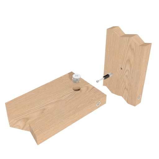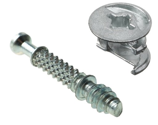 Montaż dokonuje się poprzez wywiercenie otworu Ø 15 mm, w płycie którą chcemy połączyć oraz otworu na trzpień o średnicy 7,5 mm, następnie dokonujemy montażu trzpienia w dolnej części bezpośrednio w płytę lub drewno dla gwintu euro, dla gwintu M6 należy dokupić mufę tworzywową lub metalową, dla trzpienia wbijanego wciskamy w otwór fi 8. Po montażu trzpienia zakładamy mimośród w otwór fi 15 i dokonujemy jego przekręcenia w celu złączenia 2 elementów.