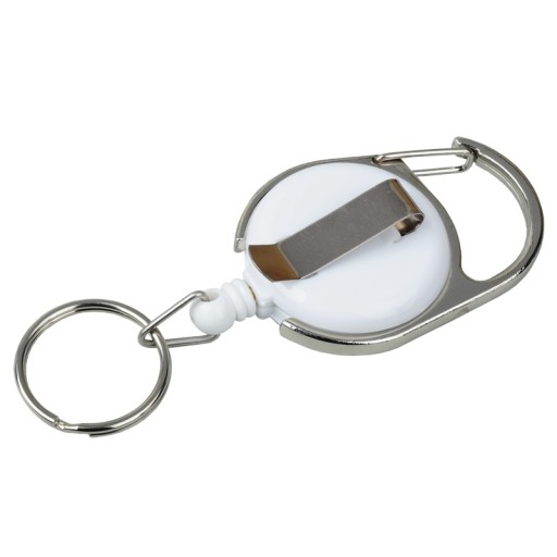 Wykonany z metalu i plastiku ski-pass z karabińczykiem, metalowym kółkiem i klamrą do paska.