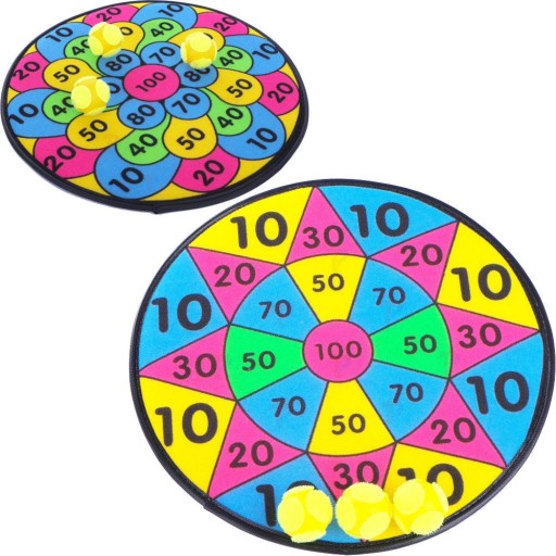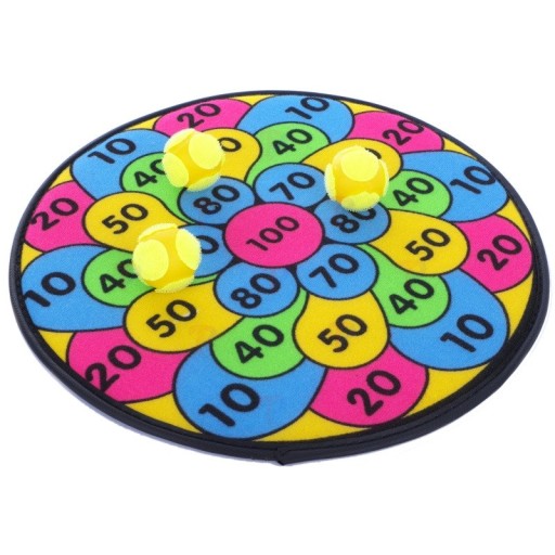 Klasyczna gra w rzutki w zupełnie nowej, bezpiecznej dla najmłodszych odsłonie. Duża tarcza z liczbowymi polami oraz grzechoczące kuleczki na rzep (zamiast rzutek). Zawieś tarczę np na ścianie, lub postaw ją w dowolnym miejscu i zaczynaj grę!