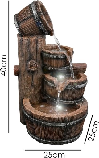 Dodanie fontanny to wspaniały sposób na stworzenie spokojnej i przyjaznej atmosfery w ogrodzie lub w domu. Dźwięk i widok cieknącej wody są naturalnie kojące, a fontanny wodne mogą być używane zarówno na zewnątrz, jak i wewnątrz, aby wywołać uczucie spokoju i relaksu. Istnieją różne rodzaje fontann, od eleganckich kamiennych konstrukcji zaprojektowanych jako centralne punkty ogrodu, po dekoracyjne fontanny, idealne do gabinetu lub salonu. Nasze nowoczesne fontanny są samowystarczalne i łatwe w konfiguracji, bez konieczności wykonywania instalacji hydraulicznej. Działają na pompie elektrycznej, która nie wiąże się z żadnymi kosztami eksploatacji / 5 m /. Nie tylko pięknie wyglądają w ogrodzie, ale są również dobre do przyciągania dzikich zwierząt, w tym ptaków i motyli, które będą przyciągane do wody, tworząc oszałamiający element centralny każdego ogrodu lub ściany patio. Są idealne, aby pomóc zagłuszyć hałas ruchu ulicznego, wytwarzając delikatny dźwięk ściekania, przekształcając Twoje podwórko w spokojne miejsce na odpoczynek od zgiełku współczesnego życia. Posiadanie fontanny wodnej w pomieszczeniu świetnie nadaje się do tworzenia uspokajającej atmosfery i łagodzenia stresu. Ruchoma woda działa również jak naturalny nawilżacz i pomaga zwalczać zanieczyszczenie powietrza poprzez uwalnianie jonów ujemnych. Wewnętrzna fontanna jest doskonałym dodatkiem do domowego biura lub gabinetu, może też wyglądać oszałamiająco jako wyjątkowa ozdoba na kominku lub półce w salonie. Wszystkie są wyposażone w białe światła LED, które sprawiają, że jest bardzo atrakcyjny w nocy. Woda przepływa z górnych misek do dolnej miski. Pompa, w zestawie światła LED. Trwała konstrukcja polyresin. Moc: 220 - 240 V. Fontanna kulowa Wymiary: dł. L 25 x W 25 x H 40 cm.