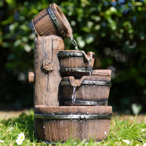 GEEZY Garden Water Feature LED Fountain Indoor/Outdoor Cascading Freestanding Polyresin Garden Statue Lights & Water Decoration (Barrel Fountain)