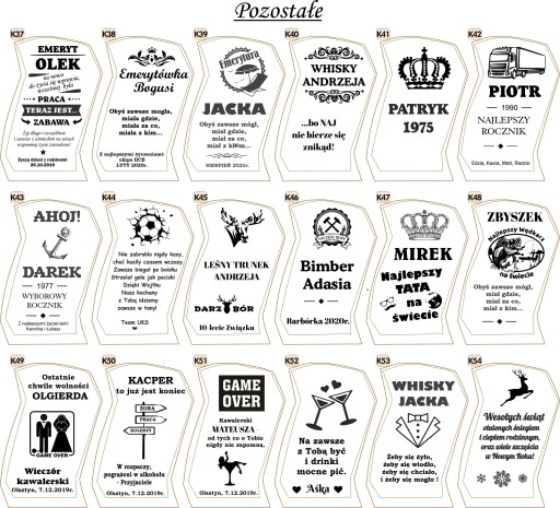 - Można dokonywać zmian osób np. słowo "tata, chłopak" wymienić np. na "DZIADEK" - należy to napisać we wiadomości dla sprzedającego wpisując nr wzorów i zmiany jakie mają w nich być zrobione.
