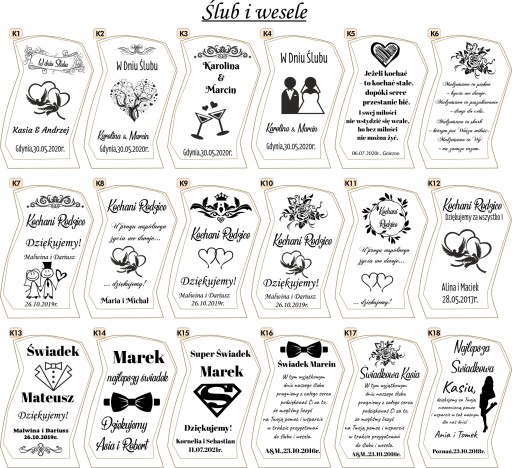 Wszystkie wzory grawerów możemy dopasować do Twoich potrzeb, tzn. daty, imiona, cyfry można zmienić stosownie do waszej uroczystości.