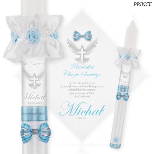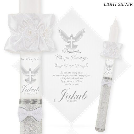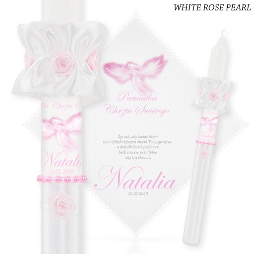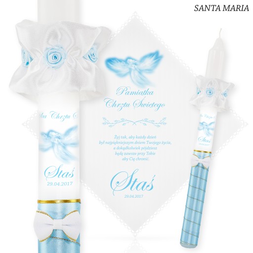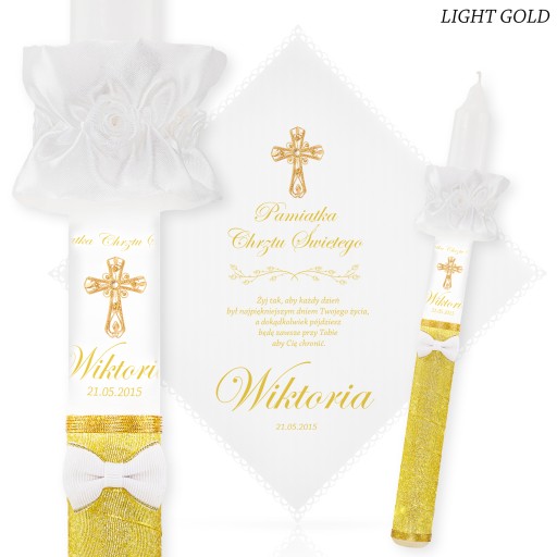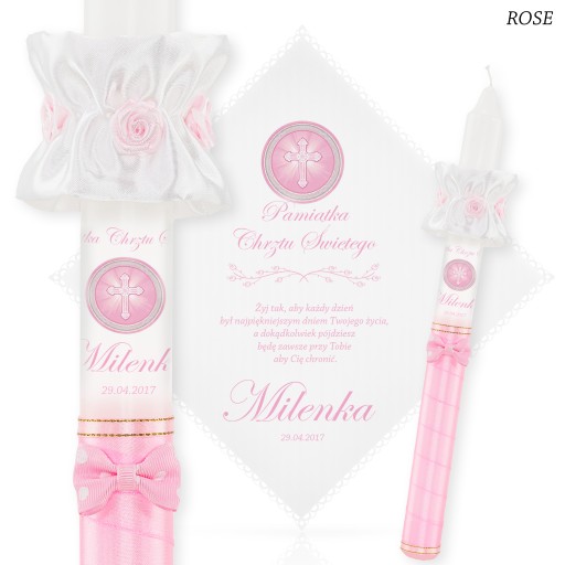 1. ŚWIECA i SZATKA : podaj aranżację kolorystyczną + imię dziecka + datę chrztu + nr wierszyka
