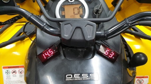Elektroniczny woltomierz z wyświetlaczem LCD. Wyświetlacz mocujemy na taśmę dwustronną 3M w dowolnym miejscu. Posiada alarm w przypadku spadku napięcia poniżej 11,5V lub wzrostu napięcia powyżej 14V.