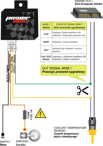 Podczas rozruchu moduł wymusza na sterowniku silnika ECU grzanie świec, zmianę czasów dawki wtrysku oraz kąta wtrysku.