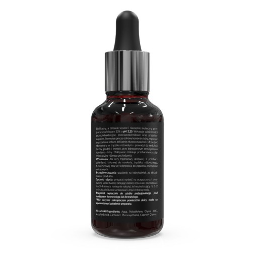 Delikatny, a zarazem wysoce i niezwykle skuteczny preparat eksfoliujący 30% o pH 2,25. Wykazuje właściwości przeciwbakteryjne, przeciwzaskórnikowe oraz przeciwzapalne. Stymuluje proces odnowy komórek skóry, reguluje wydzielanie sebum, delikatnie złuszcza naskórek. Może być stosowany w trądziku różowatym - prowadzi do redukcji liczby grudek i krostek, przy jednoczesnym zmniejszeniu rumienia skóry. Efektywnie redukuje przebarwienia pigmentacyjne różnego pochodzenia. Dla cery trądzikowej, atopowej, z przebarwieniami, skłonnej do rumienia i trądziku różowatego, łuszczycowej, ze skłonnością do zapalenia mieszków włosowych.