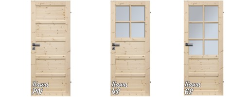 Drzwi produkowane są w wersji przylgowej i (za dopłatą) bezprzylgowej w rozmiarach 60, 70, 80 i 90 cm otwierane jako prawe lub lewe.